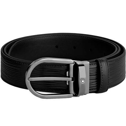 Черный кожаный ремень с подковообразной пряжкой 35мм от магазина премиальных ручек Premium Pens в Тюмени.