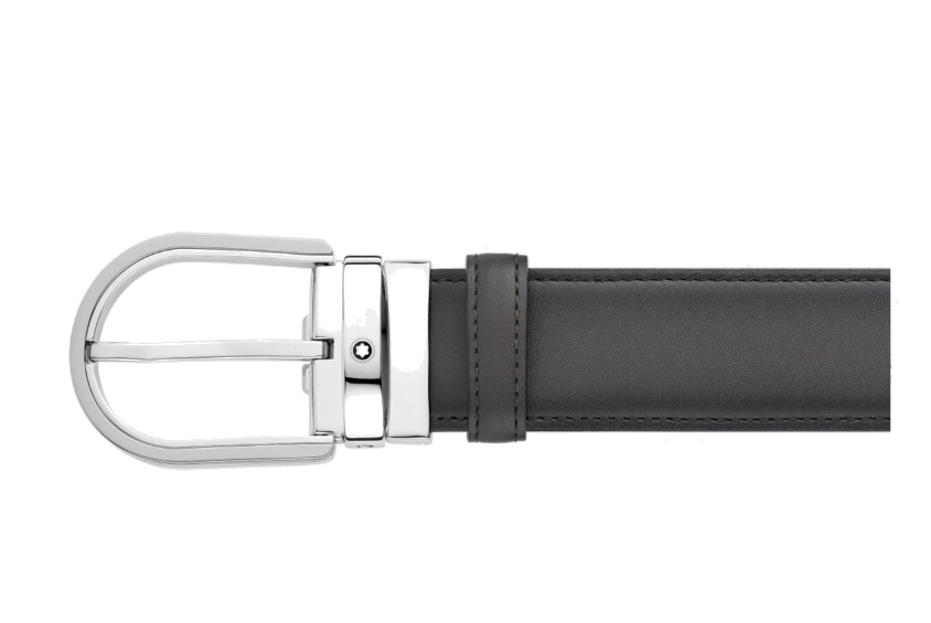 Кожаный ремень с пряжкой в форме подковы серого цвета 35 мм от магазина премиальных ручек Premium Pens в Тюмени.